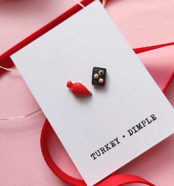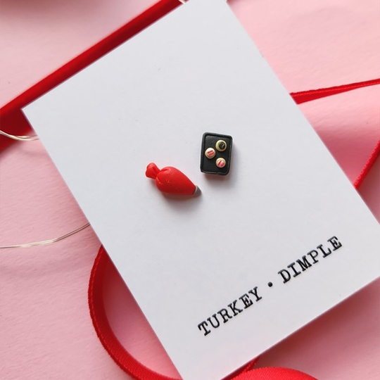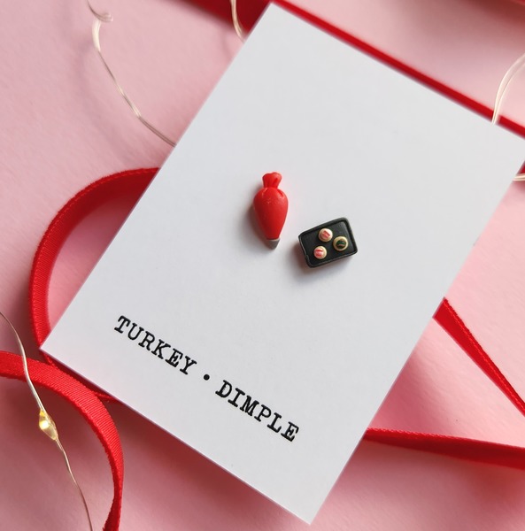 Christmas Baking inspired stud earring set. Set includes one Piping bag stud and one Cookie tray stud.