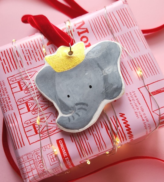Handmade and handpainted air dry clay Christmas tree ornament.