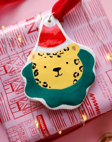Handmade and handpainted air dry clay Christmas tree ornament.