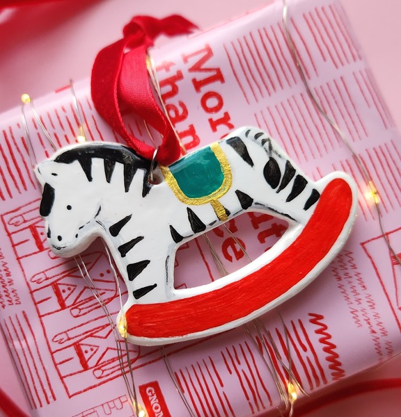 Handmade and handpainted air dry clay Christmas tree ornament.