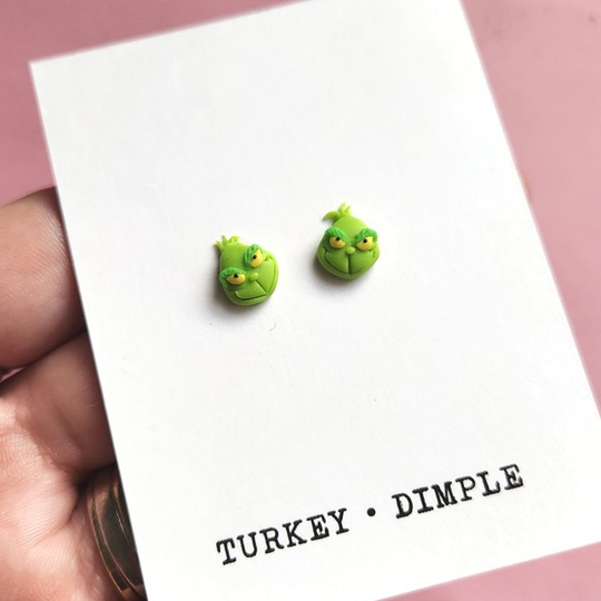 Grinch Inspired stud earrings.
