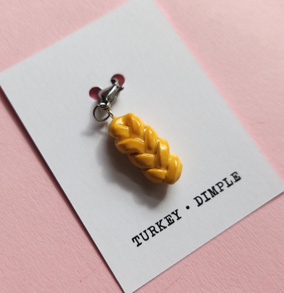 Handmade from polymer clay with lobster claw clasp for your bag, keychain, etc. Handpainted details, coated in resin.