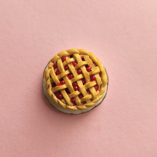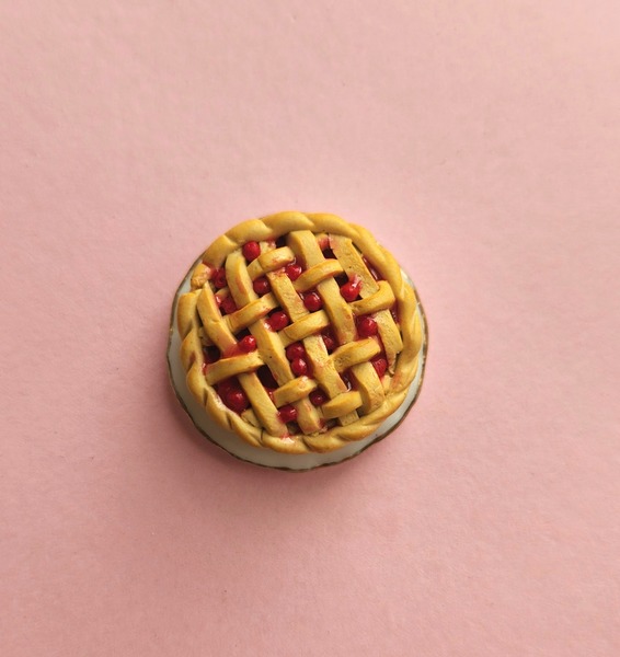 Miniature Cherry Pie handmse from polymer clay.