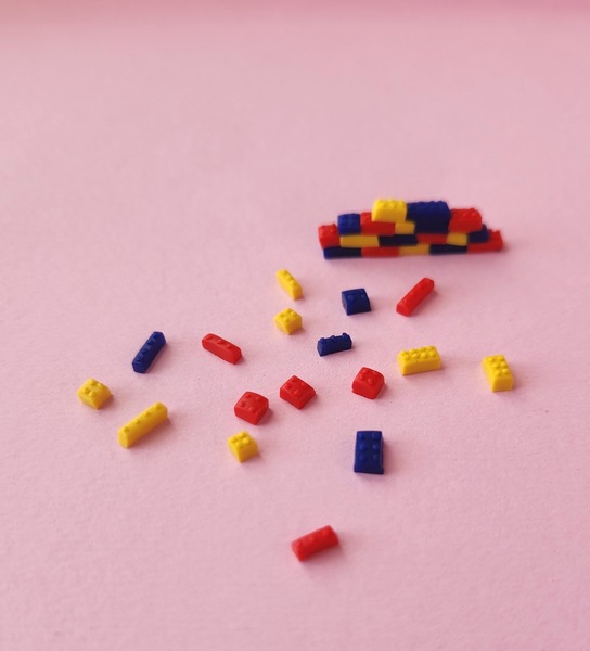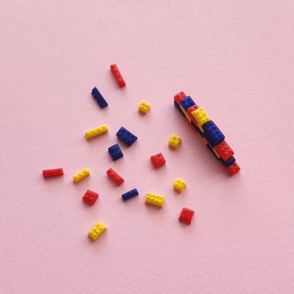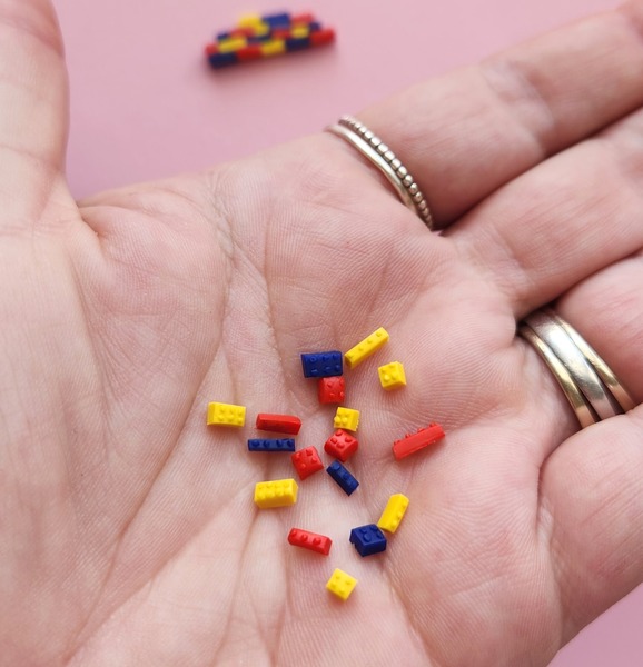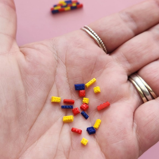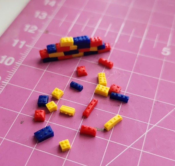 Teeny tiny lego pieces. Handmade from polymer clay.
