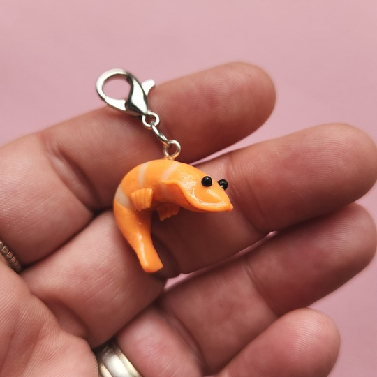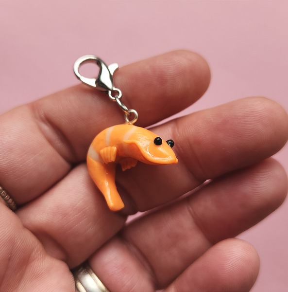 Handmade from polymer clay with lobster claw clasp for your bag, keychain, etc. Handpainted details, coated in resin.