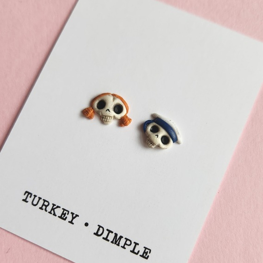 Mismatch Stud earrings, inspired by characters from The Corpse Bride.
