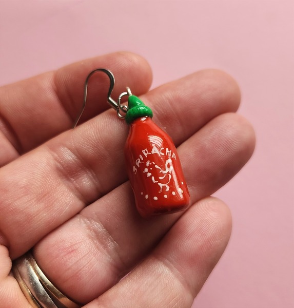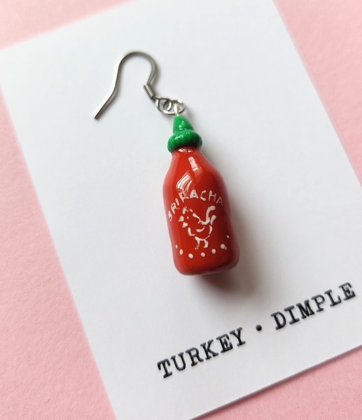 Sriracha shaped earring - sold as a ONE SINGLE EARRING.