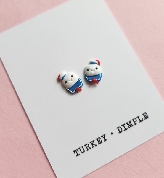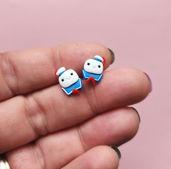 Cute stud earrings, inspired by Marshmallow/Stay Puft man from Ghostbusters.