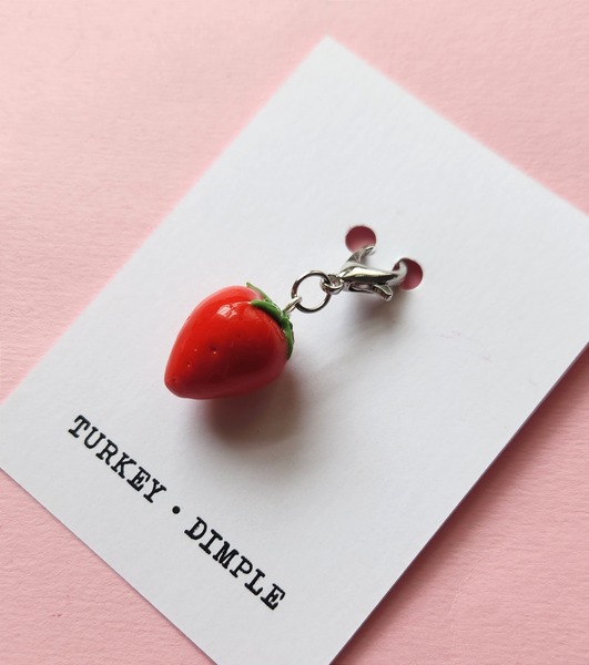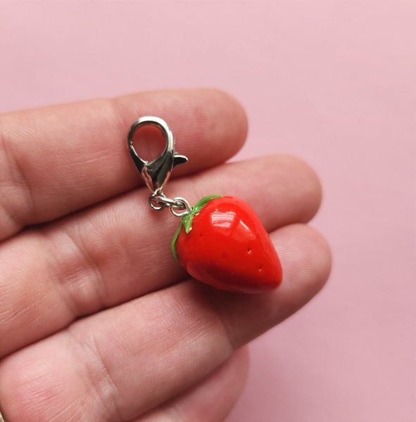 Handmade from polymer clay with lobster claw clasp for your bag, keychain, etc. Handpainted details, coated in resin.
