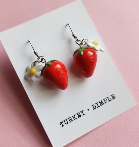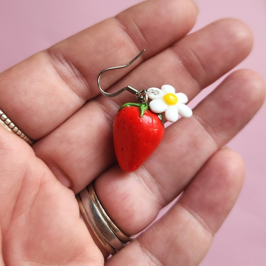 Strawberry and flower earrings.